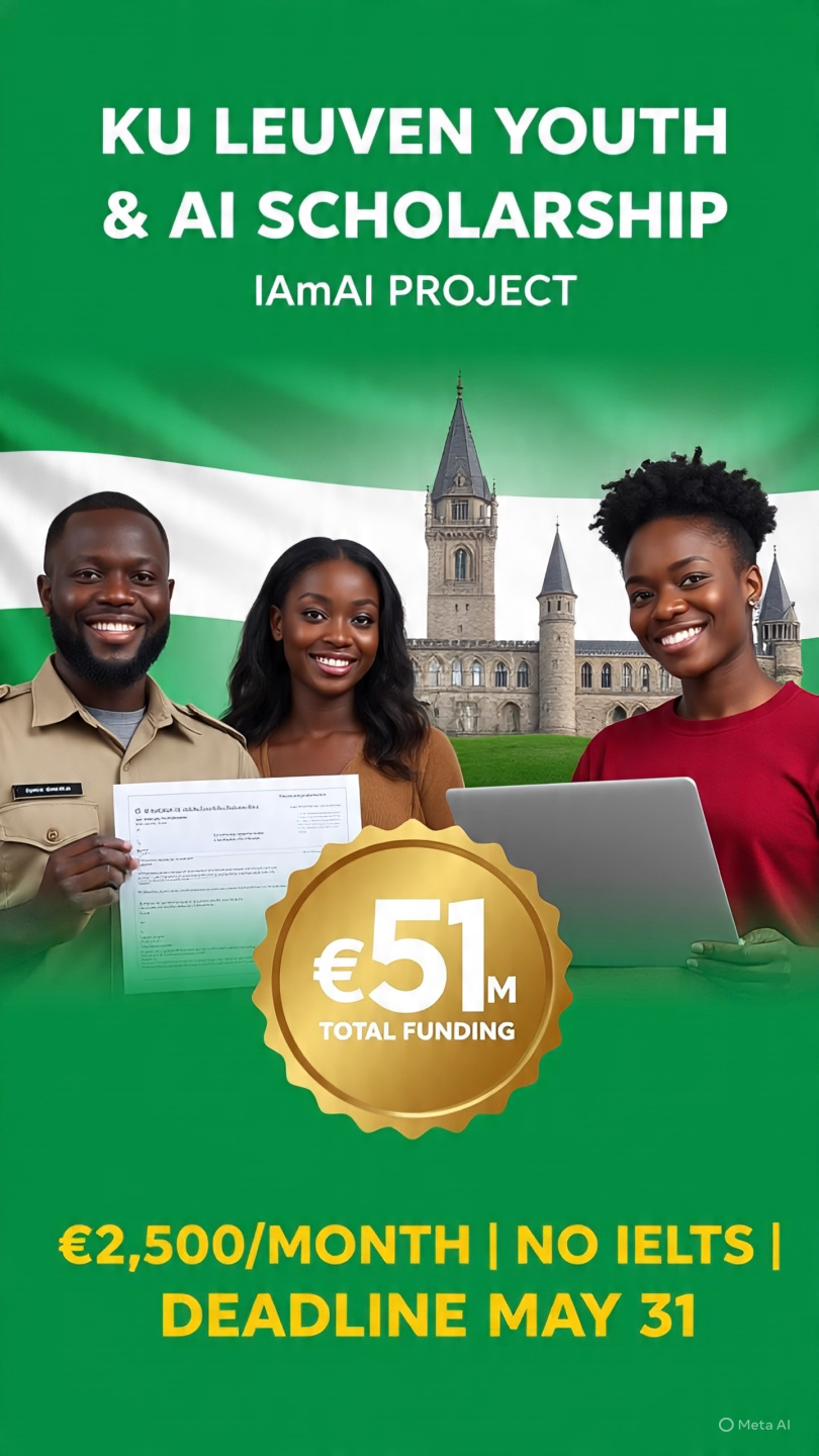 Apply for the Fully Funded PhD in Belgium for Nigerians & Africans 2026 at KU Leuven. IAmAI Project on Youth & AI. Covers tuition, monthly stipend, and research costs for 4 years. Deadline: May 31, 2026. Open to African graduates. Are you a Nigerian or African graduate dreaming of a fully funded PhD in Europe? … Read more