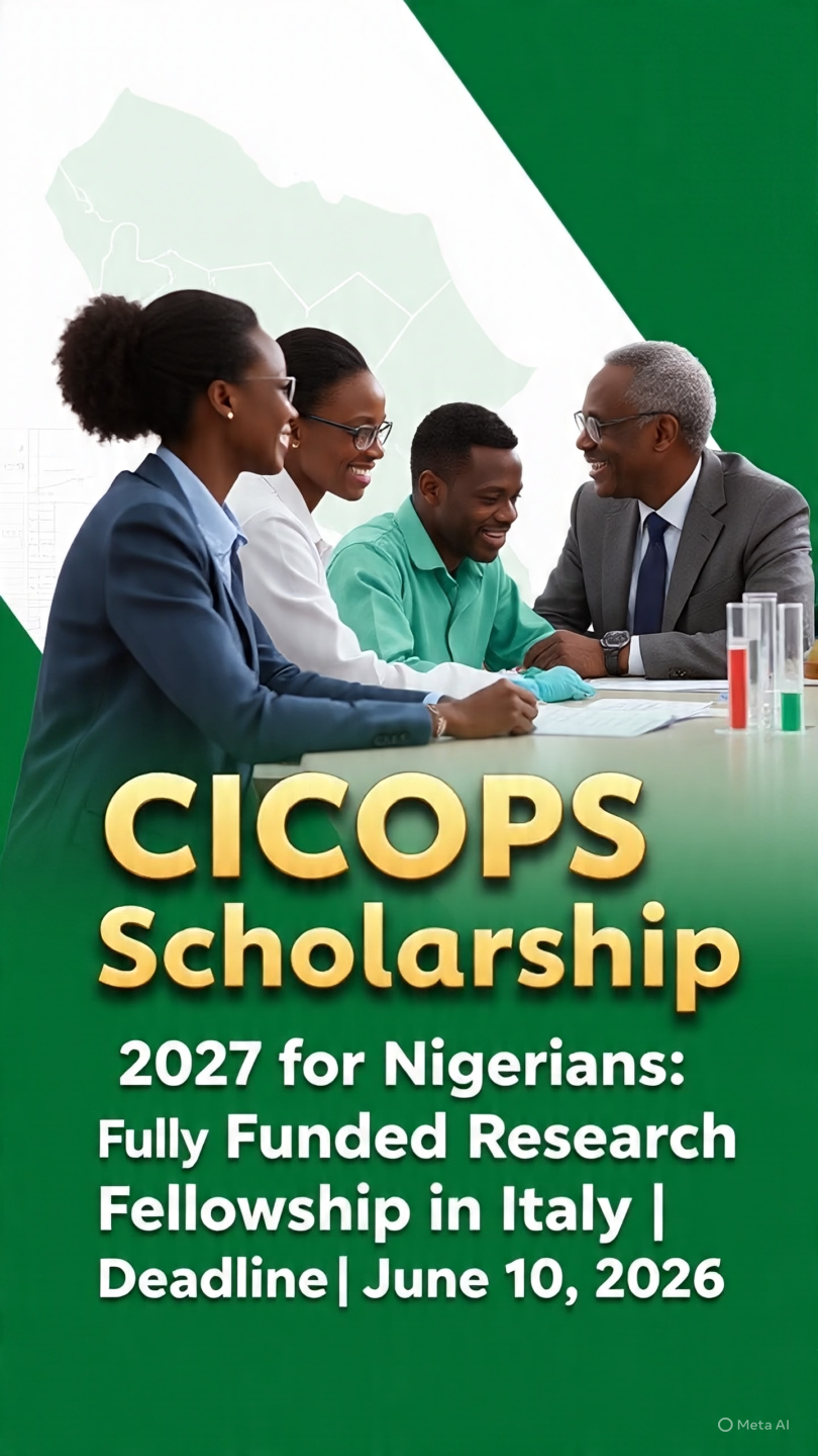 CICOPS Scholarship 2027 for Nigerians is a fully funded research fellowship in Italy. Deadline: June 10, 2026. Covers airfare, housing, meals, €150/week stipend. Are you a Nigerian professor, lecturer, or research scientist looking for a fully funded opportunity to advance your work in Europe? The CICOPS Scholarship 2027 for Nigerians is a short-term research fellowship … Read more