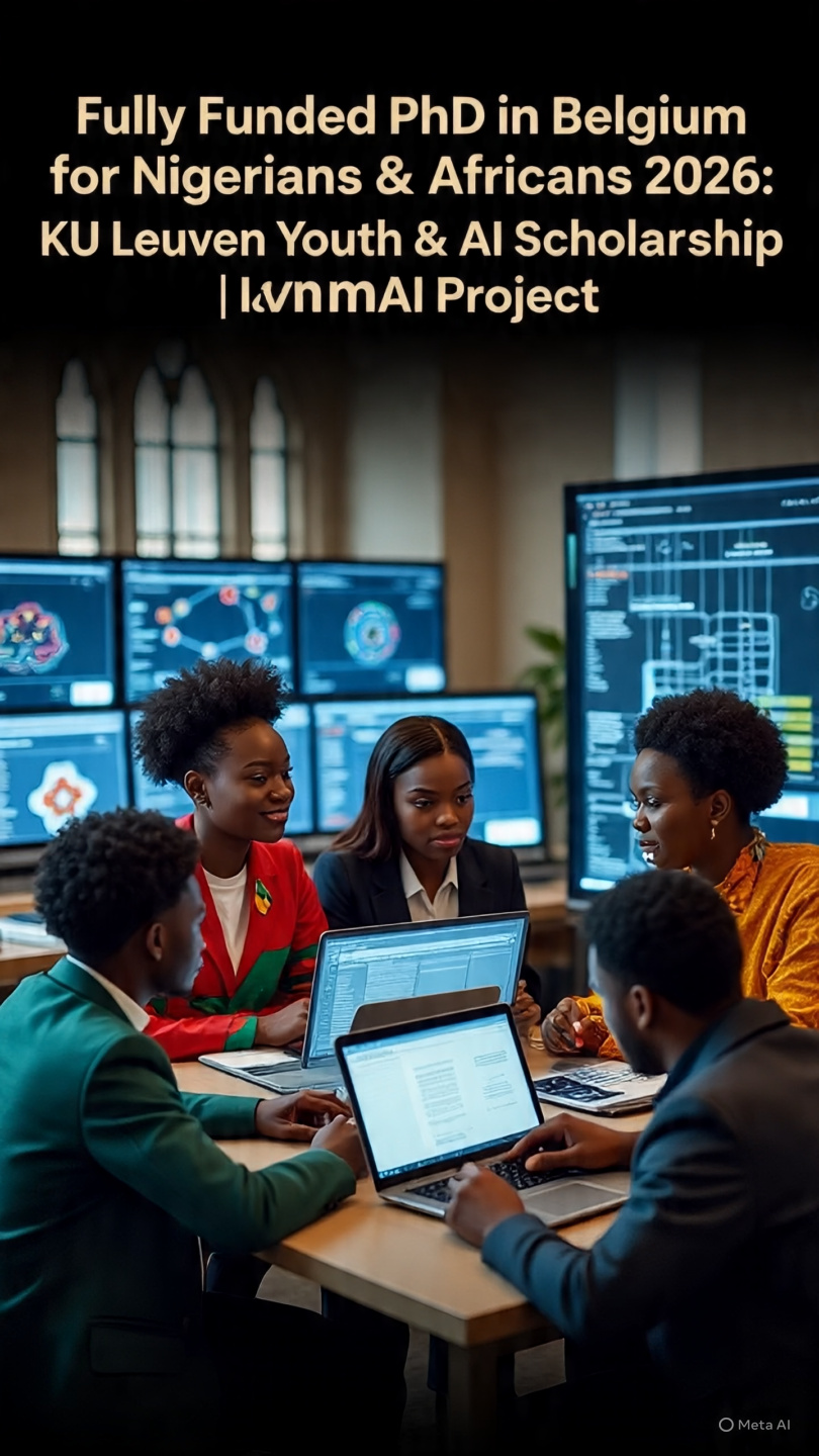 Apply for the Fully Funded PhD in Belgium for Nigerians & Africans 2026 at KU Leuven. IAmAI Project on Youth & AI. Covers tuition, monthly stipend, and research costs for 4 years. Deadline: May 31, 2026. Open to African graduates. Are you a Nigerian or African graduate dreaming of a fully funded PhD in Europe? … Read more